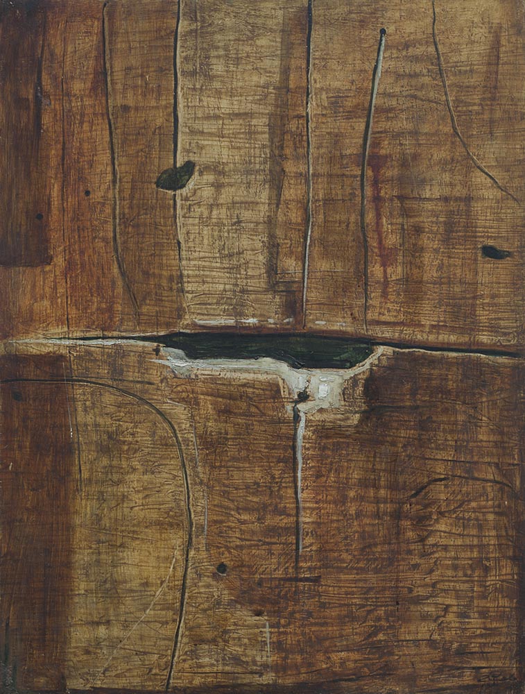Ten cykl obrazów abstrakcyjnych, często inspirowanych niepozornymi przedmiotami codziennego użytku, jest oparty na mistrzowskim operowaniu wysublimowaną gamą brązów i złamanych bieli, ukazuje wirtuozerskie operowanie fakturą - pełną pęknięć, szczelin, zadrapań i otworów - oraz subtelną gamą kolorystyczną. Za pomocą tych środków artysta buduje tajemnicze, pełne niedopowiedzeń przestrzenie, otwierające rozlegle pole dla wyobraźni i interpretacji.