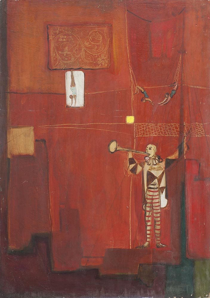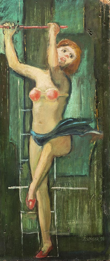 Ta seria zrodzona z fascynacji cyrkiem, sztuką z pogranicza prawdy i złudy, odsłania credo artystyczne Zdzisława Pabisiaka. Akrobaci, woltyżerki, klauni wbudowani w abstrakcyjne płaszczyzny tła, zawieszeni w czasie, samotni i wyizolowani, złapani w pułapkę tajemniczej przestrzeni, w której raz po raz pojawiają się emblematy urzekające walorami dekoracyjnymi, a jednocześnie pełne symbolicznych znaczeń. Sceny cyrkowe to kompozycje o szczególnym ładunku emocjonalnym.