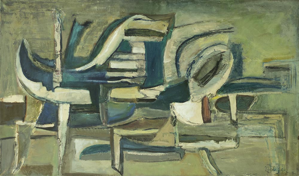 Większość wczesnych kompozycji abstrakcyjnych Zdzisława Pabisiaka charakteryzuje się intensywnym, soczystym kolorem i rytmicznie skomponowaną formą, choć i w późniejszych latach artysta powracał do podobnych rozwiązań nurtujących go zagadnień malarskich. Tutaj kształty są zbudowane z intensywnych, grubo nałożonych z tuby kolorów, kontrastujących ze sobą wzajemnie i nierzadko przywodzących na myśl koncerty jazzowe, czy też zgiełkliwe ludowe festyny.