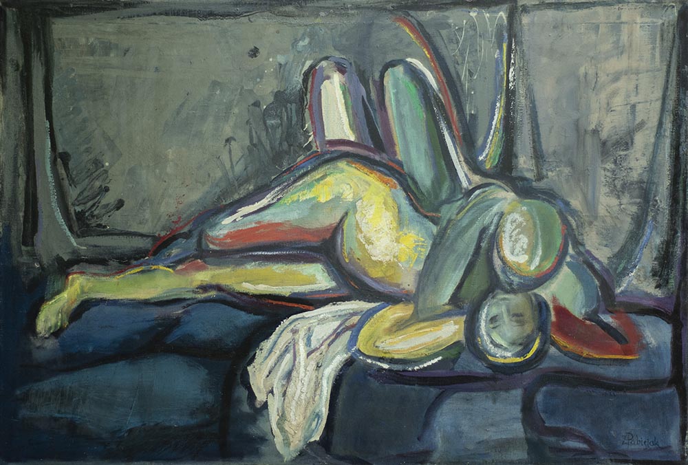 Płynność linii, syntetyczność wypowiedzi, ciekawe operowanie fakturą, szerokie pociągnięcia pędzla, zadrapania oraz nawiązanie do abstraktów poprzez tło - często płaskie i odrealnione - nadają aktom Pabisiaka szczególną aurę.